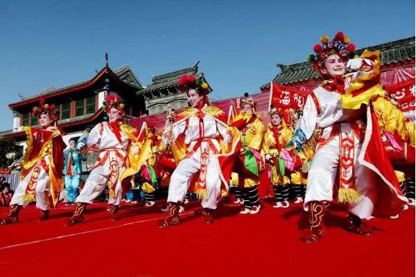 正月十五不進(jìn)城,過(guò)日來(lái)了攆出城?!闭f(shuō)明秧歌當(dāng)時(shí)已成為慶賀節(jié)日不可少的活動(dòng)內(nèi)容,而鳳城已是四鄉(xiāng)秧歌的活動(dòng)中心。海陽(yáng)秧歌得以逐步發(fā)展、日趨成熟,重要因素之一是它能不斷地吸收各種外來(lái)藝術(shù)的精華,如乾隆三十五年海陽(yáng)柳樹莊人陳英弼編寫的秧歌劇《陳老喜勸子跑四川》序中所述:“余隨胡公廷章供職邛州,甚愛蜀歌之美,仿做'跑四川'。教秧歌班演唱”。由此可見,早在二百多年前,海陽(yáng)秧歌的音樂(lè)唱腔就已經(jīng)借鑒蜀歌了。另外,海陽(yáng)秧歌中"樂(lè)大夫"俗有“螳螂門”、“八卦門”之分,即是指他的舞蹈基本動(dòng)作汲取了不同拳術(shù)套路而形成各自的風(fēng)格。