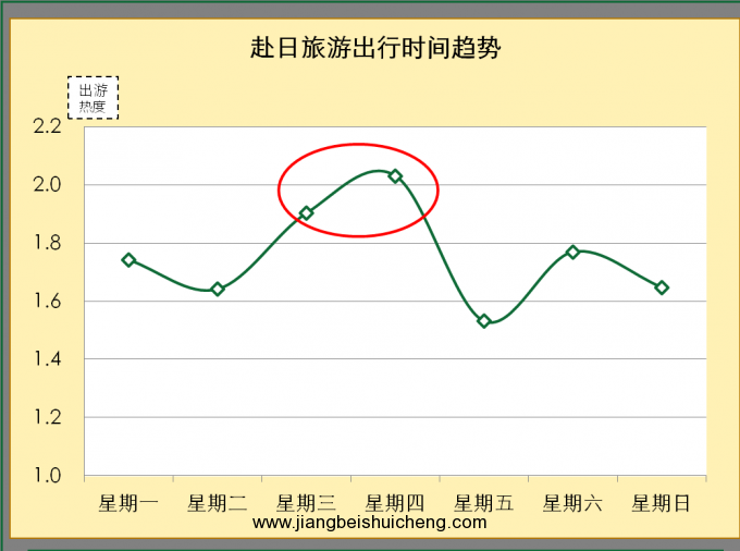 赴日旅游周二至周四呈上升趨勢,周四最高