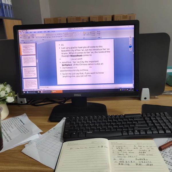 上午9:00左右,劉老師來到了實(shí)訓(xùn)室,開始給李鑫諾通英語。因?yàn)闆]有提前放好PPT,劉老師為此有點(diǎn)生氣。我們被教導(dǎo)了一頓。心服口服。
