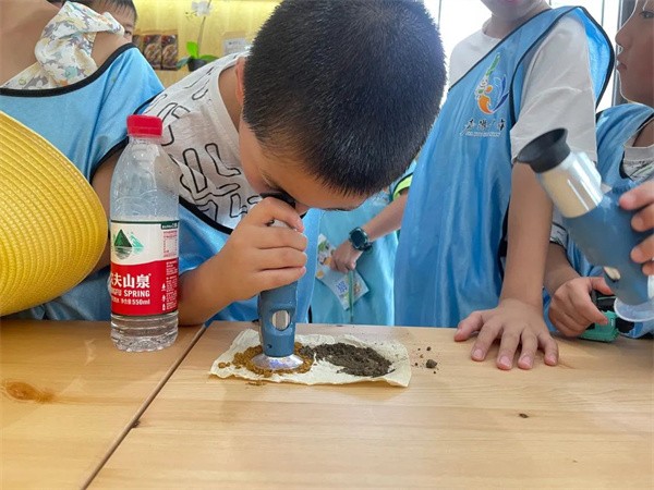 蘇坪村古兒壩是市中區(qū)遠(yuǎn)近聞名的香蔥種植基地。同學(xué)們在基地的香蔥地里,學(xué)習(xí)了如何栽種小蔥。在香蔥文化博物館,聽工作人員介紹了香蔥的種植歷史、用途、營養(yǎng)價值等知識點,并用顯微鏡觀察了普通土壤和種植香蔥的土壤有什么區(qū)別。還進(jìn)行了撈魚、寫信等有趣的活動。豐富的活動內(nèi)容讓孩子們對香蔥種植產(chǎn)生了濃的興趣,也在勞動實踐中收獲了許多快樂。