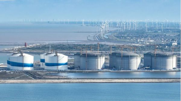 中海油鹽城“綠能港”一期擴(kuò)建工程項(xiàng)目部經(jīng)理任建勛說(shuō),鹽城“綠能港”一期項(xiàng)目4個(gè)LNG儲(chǔ)罐已投產(chǎn)運(yùn)營(yíng),6個(gè)全球最大的液化天然氣儲(chǔ)罐正在緊鑼密鼓建設(shè)中。該項(xiàng)目全部建成投運(yùn)后,總罐容將達(dá)250萬(wàn)立方米,為國(guó)內(nèi)最大的液化天然氣儲(chǔ)備基地。
