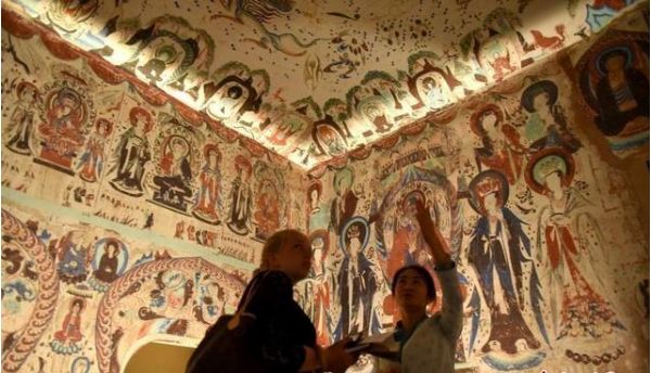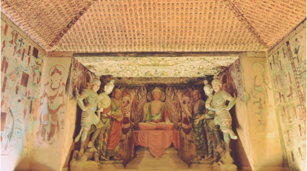 莫高窟,坐落于河西走廊的西部盡頭的敦煌。它的開鑿從十六國(guó)時(shí)期至元代,前后延續(xù)約1000年,這在中國(guó)石窟中絕無(wú)僅有。它既是中國(guó)古代文明的一個(gè)璀璨的藝術(shù)寶庫(kù),也是古代絲綢之路上曾經(jīng)發(fā)生過的不同文明之間對(duì)話和交流的重要見證。