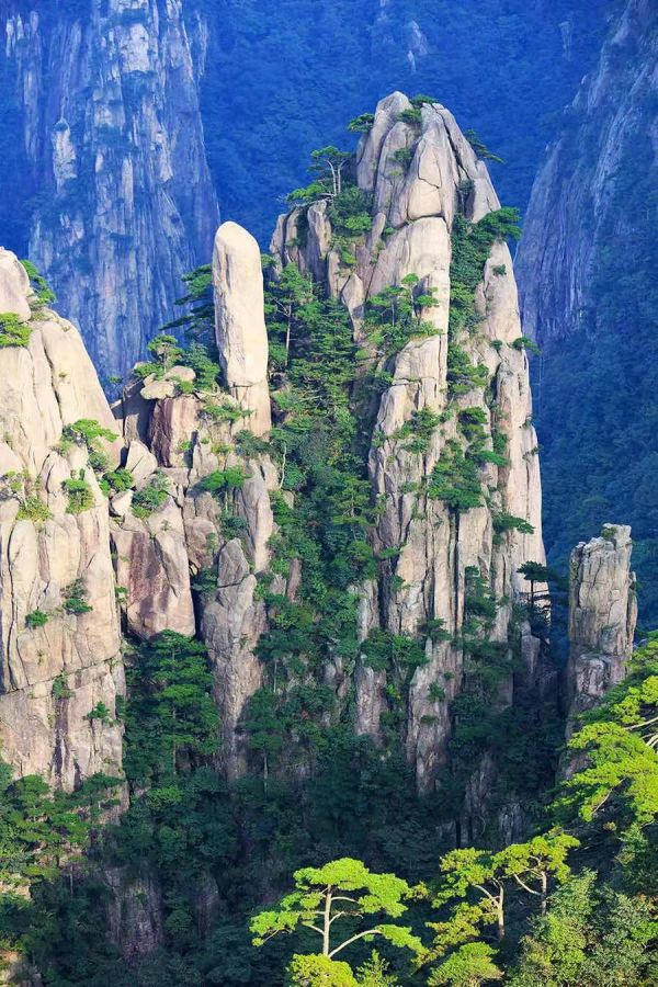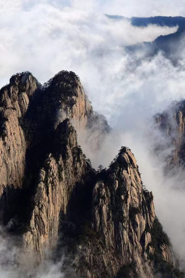 黃山境內分為溫泉、云谷、玉屏、北海、松谷、釣橋、浮溪、洋湖、福固九個管理區(qū),有千米以上高峰88座,其中“蓮花”“光明頂”“天都”為黃山三大主峰,海拔均逾1800米。黃山境內有大量的文化遺存,如古蹬道、古楹聯(lián)、古橋、古亭、古寺、古塔等,另有現(xiàn)存摩崖石刻300余處,孕育了中國山水畫“黃山畫派。