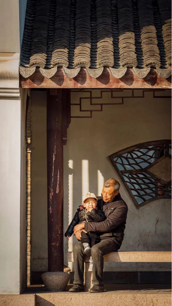 黃昏時分的爺孫倆,多么希望時光能夠再慢一些,再溫柔一點。