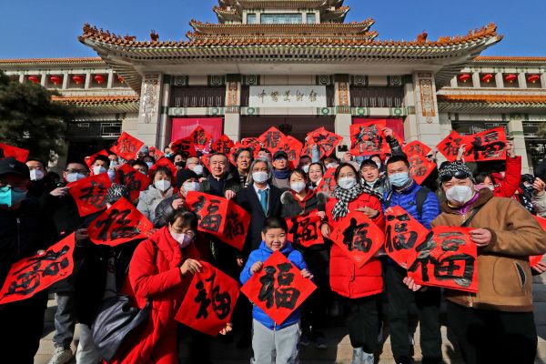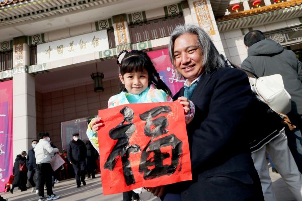 大年初一,中國(guó)美術(shù)館迎來大批觀眾。當(dāng)天下午兩點(diǎn),美術(shù)館前廣場(chǎng)熱鬧起來,喜氣洋洋的中國(guó)美術(shù)館送福賀新春活動(dòng)在這里舉辦。