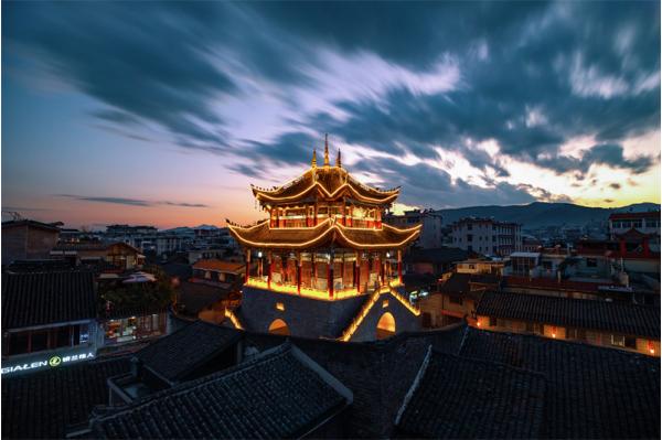 古城以鐘鼓樓為界形成“穿城三里三、圍城九里九”,以南北中軸線為主的“四街三關(guān)二十三巷”的棋盤式格局。城內(nèi)的鐘鼓樓又名凌霄樓,始建于清雍正年間,被譽為“南來建州第一樓”,其“五星抱月”式樓頂為川西南所獨有。漫步青石街上,一樓一底的青瓦栗色木板樓房琳瑯滿目??v橫交錯的小巷內(nèi),大量明清時期修建的民宅、寺廟、會館等星羅棋布,小小會理,城中有異景,巷里藏乾坤。行走其間,在一磚一瓦上,能觸摸到會理市最古老的脈搏;在一苔一蘚間,能聞聽到會理市最久遠的傳說。