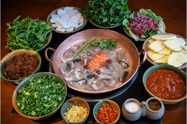 以新鮮羊肉,配以爽滑的米粉,加入鮮羊肉湯,及各種調(diào)料和具有特色的油辣椒,米粉入口即化,老少兼宜,羊肉肥瘦適中,油而不膩。這是會理市首屈一指的小吃——羊肉粉。