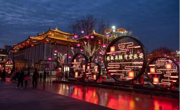 大唐不夜城是《長安十二時(shí)辰》長安輿圖里晉昌坊和通濟(jì)坊所在地,整體風(fēng)格為仿唐文化建筑。以盛唐文化為主線,唐文化是中華民族的主流文化,大唐不夜城不僅是唐文化的現(xiàn)代演繹,且是兼有現(xiàn)代文化,世界各國文化互通、交流的多樣化集合形態(tài)。
