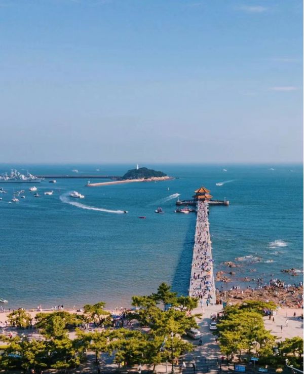 青島棧橋始建于清光緒十八年(1892年),是青島的重要標志性建筑物和著名風景游覽點 ,據(jù)說棧橋是青島第一個碼頭 最初所為海軍碼頭,德國侵占青島后改為貨運碼頭。青島棧橋全長440米,寬8米,鋼混結(jié)構(gòu),橋南端筑半圓形防波堤,堤內(nèi)建有民族形式的兩層八角樓,名"回瀾閣","飛閣回瀾"被譽為"青島十景"之一。來青島,在棧橋上喂喂海鷗,在落潮的時候站在礁石上走近大海,這里比任何一個有海的城市都多了一份歷史的韻味,感受這里的空氣和大海的味道,自然的放慢腳步,在喧囂的市井生活里, 這里是難得的愜意時光。棧橋沿岸,就是棧橋公園,離車站不是很遠,來青島的第一站便是這里,從青島站步行到棧橋,也不需要太長的時間,漫步棧橋海濱,游人如織,微風徐徐,海鷗自由自在的飛過,游艇載著游客暢游碧海之中……感受青島的歷史韻味和美麗的風景,駐足停留于棧橋,碧海藍天,直到黃昏,夜幕降臨,每一個時刻都是美的享受。