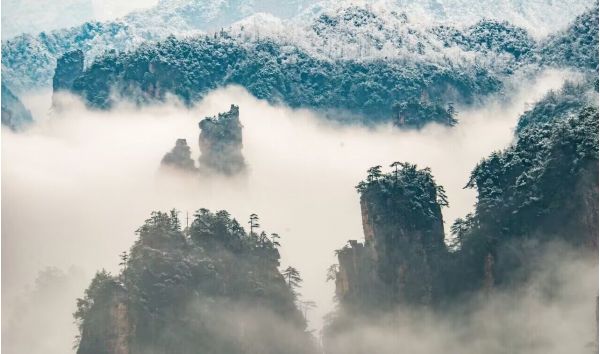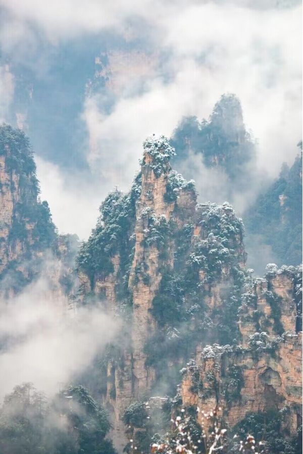 到了冬季,硬朗震撼的張家界,因為薄薄一層白雪則多了一份空靈感。寒風吹過,山谷中只剩下叮叮當當?shù)撵`動聲音。