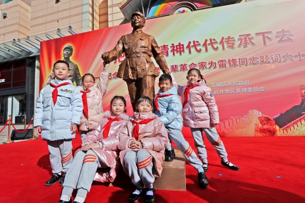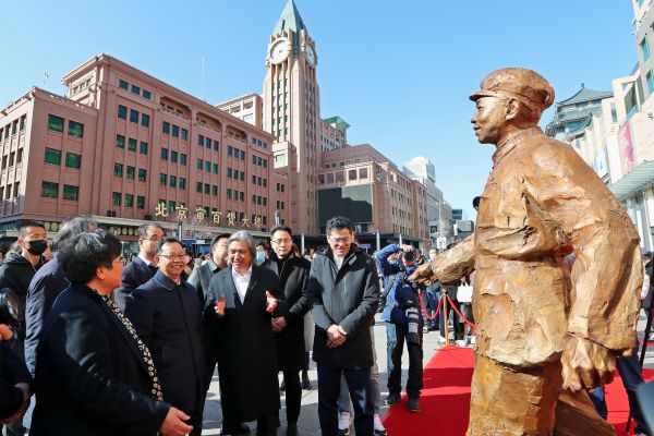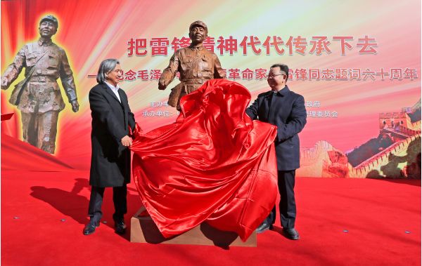 3月1日,由中國美術(shù)館、北京市東城區(qū)委、東城區(qū)人民政府共同主辦的“把雷鋒精神代代傳承下去—紀(jì)念毛澤東等老一輩革命家為雷鋒同志題詞六十周年”活動(dòng)在北京王府井步行街舉行?;顒?dòng)現(xiàn)場,全國政協(xié)常委、民盟中央副主席、中國美術(shù)館館長、中國美協(xié)副主席吳為山與東城區(qū)委書記孫新軍共同為雷鋒同志銅像揭幕。