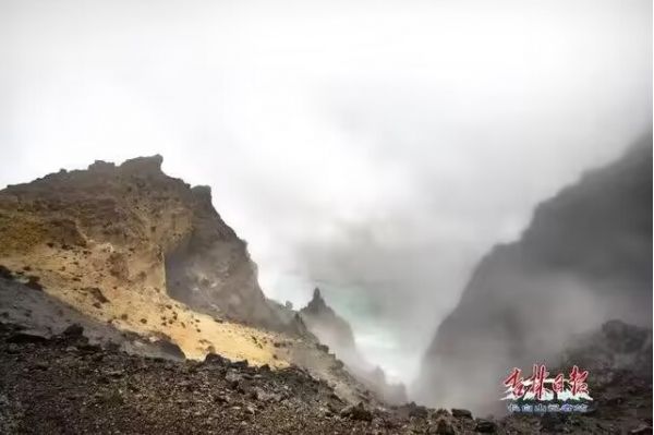 6月22日,受大霧的影響,長白山主峰氣溫非常低,滿是霧氣的天池讓人感覺如同置身仙境一般。時而云開霧散,天池真容展現(xiàn)在眾人面前,吸引游客拍照留念。