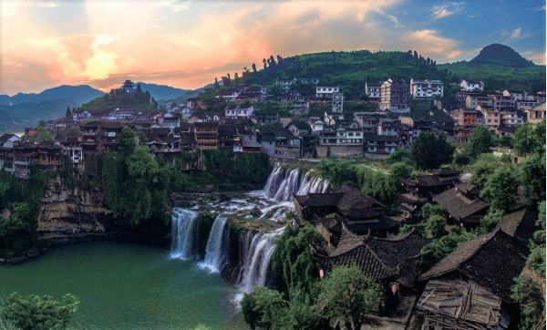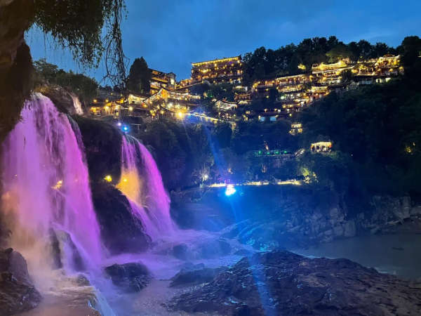 “掛在瀑布上的千年古鎮(zhèn)”由此得名。有詩贊曰:“動(dòng)地驚天響如雷,憑空飛墜雪千堆,銀河浩瀚從天落,萬斛珍珠處處飛?!?br />