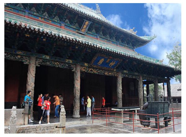 北宋時(shí)曾兩度對(duì)解州關(guān)帝廟大興土木。第一次是宋大中祥符間(1008年—1016年)重建。當(dāng)年鹽池水少鹽減,皇帝派使臣查核,回復(fù):“鹽池為患的是蚩尤!”龍虎山張?zhí)鞄熥嗾?qǐng):“古代忠烈之士死后成神,蜀將關(guān)羽忠勇絕倫,陛下禱告召之必勝無疑”。于是皇帝令天師在宮中焚化符箓,一位美髯公旋即披甲佩劍而下作答:“臣等會(huì)齊岳瀆陰兵,立助為陛下滅妖!”幾日過后鹽池水積滿如初?;噬洗髳偅抵荚诮庵菪藿P(guān)羽廟。第二次是元祐七年(1092年)知州張杲之重修?;际份d,宋真宗大中祥符間的重建,是歷代帝王首次敕建關(guān)廟,所以“殿皆石柱,雕龍飛騰,廟貌宏麗甲于天下”。張杲之重修后,隨著關(guān)公被封為“崇寧真君”,解州關(guān)廟又被懸匾為“崇寧宮”。