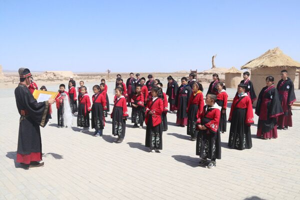 為讓游客更好地體驗(yàn)玉門關(guān)文化內(nèi)涵,景區(qū)今年對(duì)研學(xué)課程、研學(xué)場(chǎng)館、研學(xué)服飾進(jìn)行提質(zhì)升級(jí),新增都尉迎賓、將士巡關(guān)、大漢軍威等文化演藝項(xiàng)目,通過穿漢服、游古跡、擊戰(zhàn)鼓、寫漢簡(jiǎn)、品漢宴等,使游客全方位了解漢代歷史文化?!倍鼗陀耖T關(guān)遺址景區(qū)研學(xué)部經(jīng)理潘存貴介紹,景區(qū)針對(duì)不同年齡段的學(xué)生群體設(shè)計(jì)《玉關(guān)學(xué)堂》系列研學(xué)內(nèi)容,讓學(xué)生們以沉浸式體驗(yàn)方式感受古代開筆禮的全過程,還新增《邊塞家書》研學(xué)課程,引導(dǎo)學(xué)生用漢簡(jiǎn)向家人寫一封漢代家書。此外,景區(qū)今年還新增了4間研學(xué)教室,可容納300人同時(shí)上課。