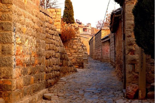 集合出發(fā),乘車赴石家莊井陘(車程約4小時)石頭村,是一部用石頭書寫的村落史詩。于家石頭村位于河北省井陘縣城微水鎮(zhèn)西南約十五公里處,建于明朝成化年間,距今已有五百多年的歷史,這個石頭村在四面環(huán)山的洼地,山巒環(huán)抱,綠樹掩映,不到村頭見不到人家。當走過彎彎曲曲的山路,走進這個村子,一下就置身于石頭的世界:石樓石閣,石房石院,石桌石凳,石磨石碾,石街石巷,石橋石欄,村路也是古老的石頭鋪就的。鋪路的石頭多是青灰色,石質堅硬,歲月的摩擦使石頭棱角圓潤光亮,但這石路光而不滑,干爽潔靜,走在上面,腳下發(fā)出輕輕而有韻律的"噠、噠"的聲響,這聲音讓人心中泛起一股寧靜、幽遠的情思。站在這石頭街上,環(huán)顧四周,與腳下的石路相連的街、巷、胡同全是青色的石路,路的兩旁全是石頭房院,隨便推開一扇石門,便又會看到一個石頭筑造的小天地。