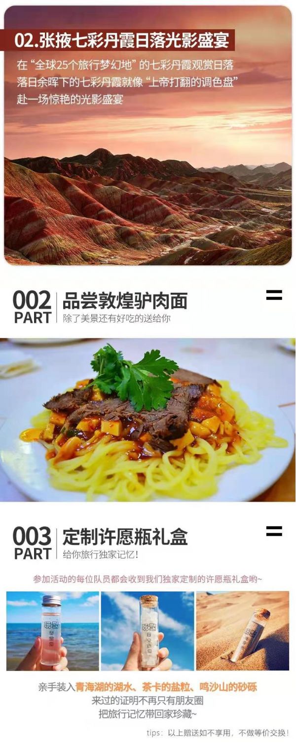 7.當(dāng)天景點(diǎn)均為雅丹地貌及大景點(diǎn),需做好防曬工作以及美拍的服裝。