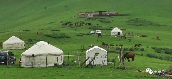 到了可以拍攝的景點(diǎn)主動(dòng)停車,讓我們下去拍攝。山頂?shù)娘L(fēng)光的確要比山下好多了,但是仍然是青山,綠水,今天陰天就看不到藍(lán)天白云了。老張一直游說我們要到山頂蒙古包參觀做客。并給我們糾正這個(gè)不叫在蒙古包,只有在蒙古才叫蒙古包。在哈薩克這叫氈房,漢族叫帳篷。他說你們可以到氈房里去看看,那是哈薩克族的家,到里面參觀拍照都可以。如果消費(fèi),比如說喝牛奶,烤羊串啊等等要花錢。我們到了山頂,在老張的引領(lǐng)下步入氈房。