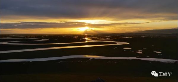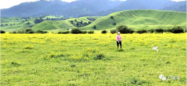 乘區(qū)間車進(jìn)入景區(qū),大家直奔最好的景點(diǎn)。雨過天晴霞光萬道,細(xì)霧中的遠(yuǎn)山露出淡淡的藍(lán)色,廣袤無垠的綠地一望無際,沁人心脾的野花鋪天蓋地九曲十八彎的河流蜿蜒曲折,映射出多個(gè)太陽。我們一行立即受到感染激動(dòng)不已,拿出飛機(jī)就放飛,迅速升天,不到十分鐘過來幾個(gè)保安說這里禁飛,命令我們降落。我們馬上降落??扇思覄倓傠x開,我們又有人飛起。
