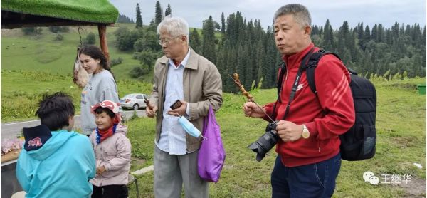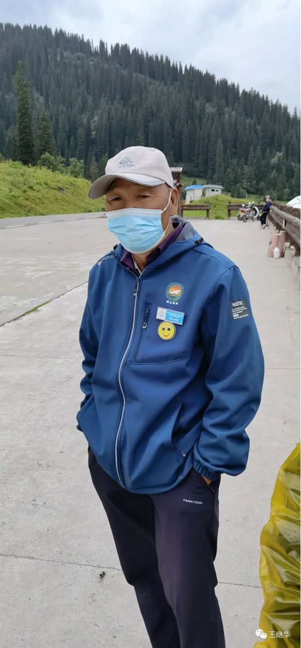 有一個(gè)在此休息的導(dǎo)游告訴我們山頂上漂亮可以到山頂上去放無人機(jī),。到山頂有電瓶車票價(jià)120。我們6個(gè)人包了一輛車,司機(jī)叫老張,中等個(gè)風(fēng)吹日曬的黑臉布滿了皺褶。他很熱情主動(dòng)的介紹山上的情況,開車的時(shí)候主動(dòng)問我們新疆第一大民族是什么民族,我們說是哈薩克,他在前面開著車說:錯(cuò)。是維族,他又問第二大民族是什么,我們說哈薩克,他得意的說:還是錯(cuò),是漢族。他又問第三大民族是什么,我們說哈薩克,他說對(duì)了。他又問,你知道那拉提是什么意思,我們說不知道,他說哈薩克語是太陽升起的地方。老張接著自我介紹他也是一個(gè)漢族,今年59歲,家在100公里外的公留縣,老婆是一個(gè)教師,很漂亮。開私家車來這上班,宿舍就在山下公司宿舍。和山上氈房里的哈薩克牧民都非常熟悉。言語之間露出一些自豪。