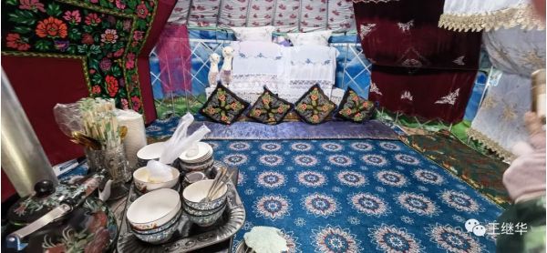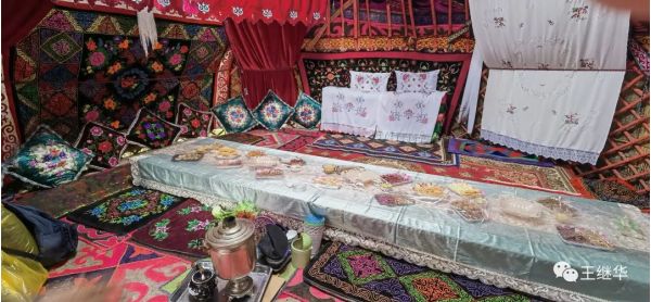 氈房里漂亮非常,進(jìn)門不到一米就是大床。沒有什么家具,但是干干凈凈布草簡潔大方,有想住一夜的欲望。