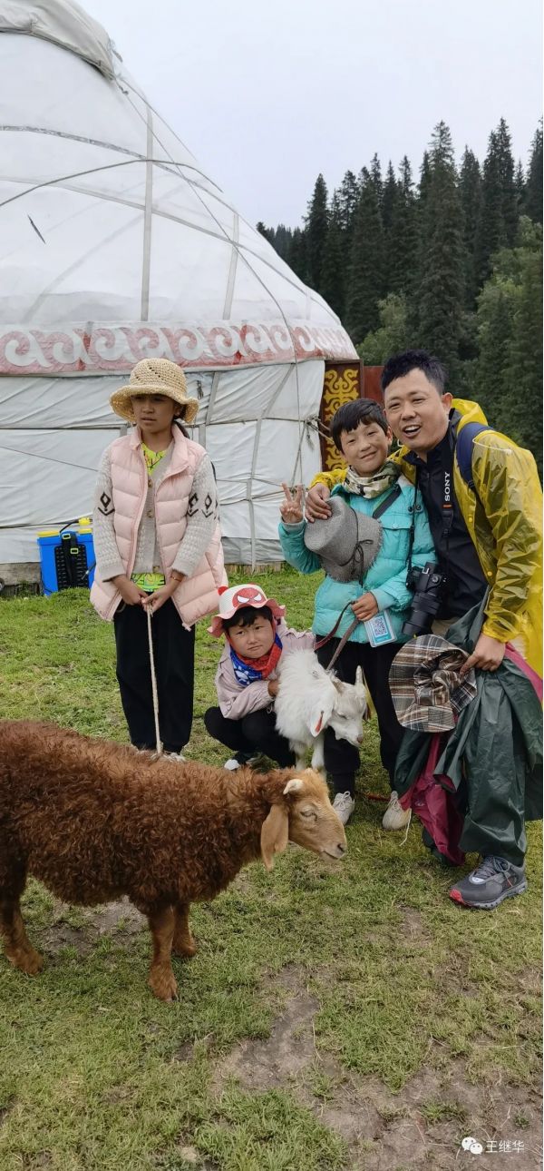 我們幾個(gè)人給他照相,我們領(lǐng)隊(duì)劉寶平和兩個(gè)小孩親密交談,通過交談,知道大的小姑娘一個(gè)叫阿依孜爾,一問小男孩竟然也是姑娘,叫阿依格爾。兩個(gè)小姑娘非??蓯?。阿依孜爾向前面一指說這是我媽媽。我們順著她指的方向一看。