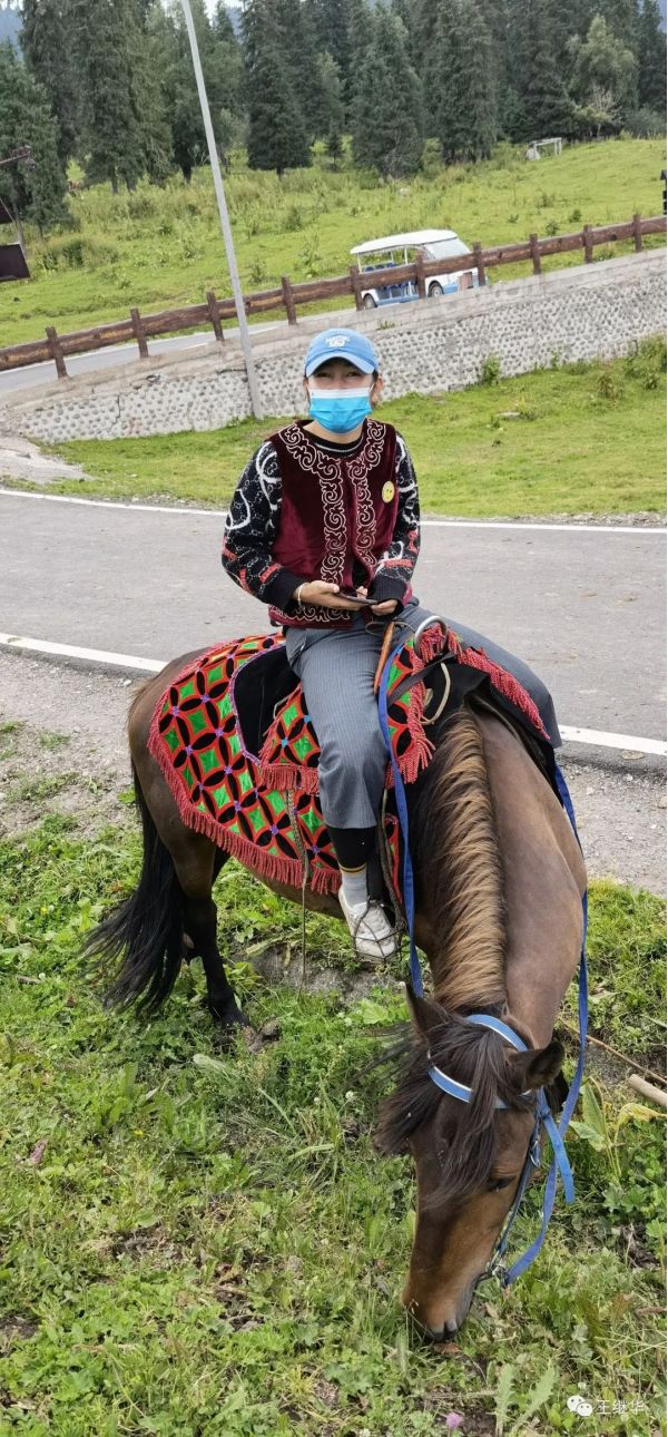 是一個(gè)年輕漂亮英姿颯爽騎馬的姑娘。她看到我們看她驅(qū)馬過來,友好的向我們一笑,在馬上和我們攀談起來。她說自己今年29歲。