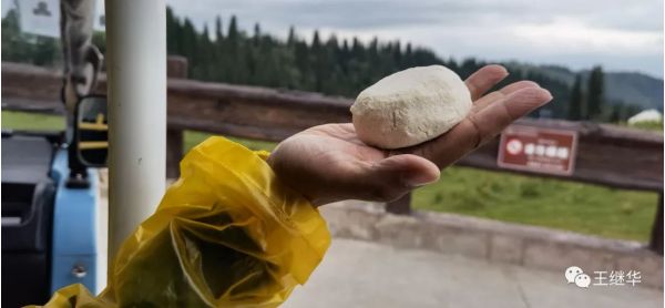 我們吃完羊肉串,每人又要了一杯鮮牛奶然后去山頂啟動(dòng)無人機(jī)放飛。這時(shí)候阿依孜爾氣喘吁吁的趕過來,遞給劉總一個(gè)白色的團(tuán)子。說這是奶酪送給你的。好淳樸的孩子。