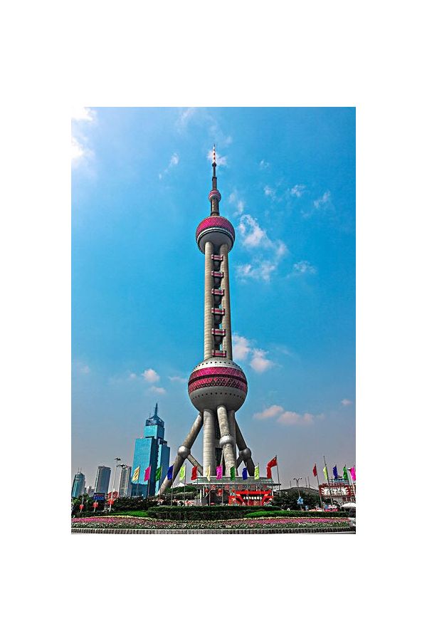 東方明珠廣播電視塔,簡(jiǎn)稱“東方明珠”,位于上海市浦東新區(qū)陸家嘴世紀(jì)大道1號(hào),地處黃浦江畔,背擁陸家嘴地區(qū)現(xiàn)代化建筑樓群,與隔江的外灘萬國(guó)建筑博覽群交相輝映,1991年7月30日動(dòng)工建造,1994年10月1日建成投入使用,是集都市觀光、時(shí)尚餐飲、購(gòu)物娛樂、歷史陳列、浦江游覽、會(huì)展演出、廣播電視發(fā)射等多功能于一體的上海市標(biāo)志性建筑之一。截至2019年,為亞洲第六高塔、世界第九高塔。東方明珠廣播電視塔主體為多筒結(jié)構(gòu),由3根斜撐、3根立柱及廣場(chǎng)、塔座、下球體、5個(gè)小球體、上球體、太空艙、發(fā)射天線桅桿等構(gòu)成,總高468米,總建筑面積達(dá)10萬平方米。