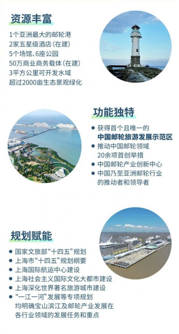 寶山濱江三江交匯,資源豐富、底蘊深厚,正在以高標(biāo)準(zhǔn)建設(shè)具有全球影響力的上海國際郵輪旅游度假區(qū),拓展郵輪經(jīng)濟(jì)產(chǎn)業(yè)鏈,打造具有國際郵輪特色、海上門戶標(biāo)識度的文旅新地標(biāo)。