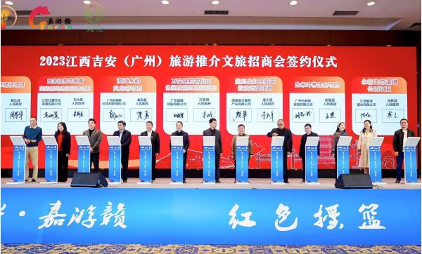 由江西省吉安市人民政府主辦的“紅土情深-春光燦爛·嘉游贛”暨“紅色搖籃 山水吉安”2023江西吉安(廣州)旅游推介及文旅招商活動在廣州舉行