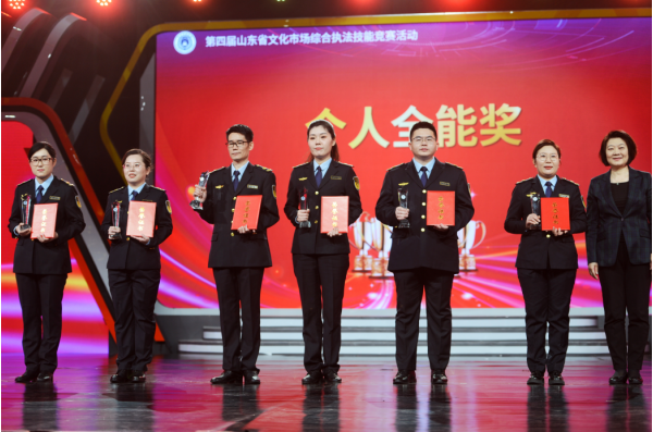 競賽活動中,由16市各選拔4名執(zhí)法人員組隊參加團體和個人競賽。經(jīng)過激烈角逐,最終,青島市代表隊獲得團體成績第一名。獲獎選手將在集中強化訓(xùn)練后,代表山東省參加全國文化市場綜合執(zhí)法技能競賽。