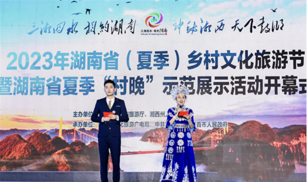6月3日晚,在熱鬧的苗鼓聲和湘西黃金茶的茶香中,2023年湖南?。ㄏ募荆┼l(xiāng)村文化旅游節(jié)暨湖南省夏季“村晚”示范展示活動在湘西州吉首市隘口村開幕。