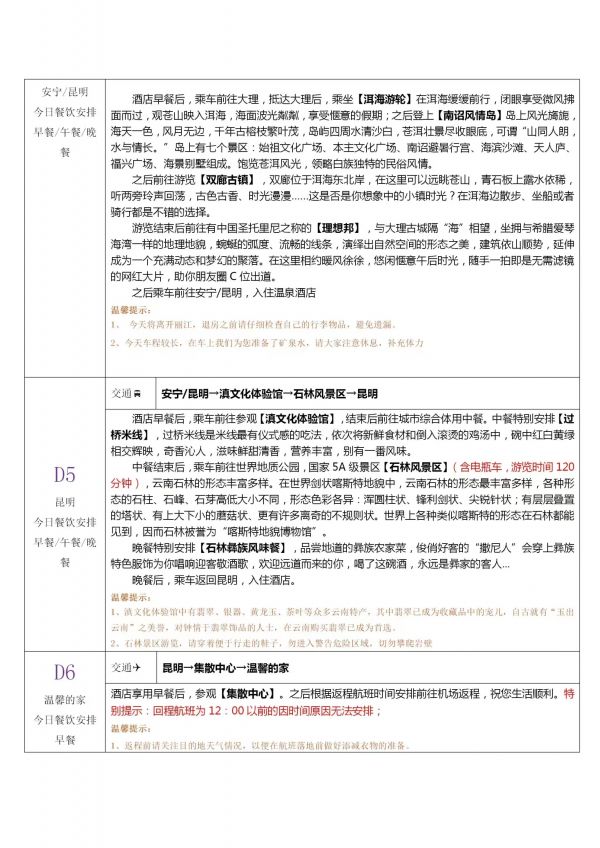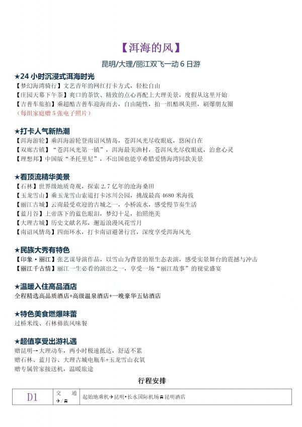 昆明-大理-麗江雙飛6日游