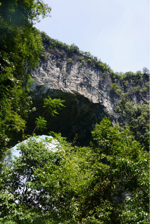 湘西的世外桃源,完全未開發(fā)的徒步路線,臨近之前的一路上還是一片平常的小山村,向下望去時(shí)赫然出現(xiàn)一道雄偉的天生橋地貌,與地面落差極高。當(dāng)?shù)厝酥环Q作天生橋。因其兩邊各有一明洞,橋下還暗藏一個(gè)黑洞,由上往下的角度俯瞰極像豬鼻,于是命名“”豬鼻嶺“。