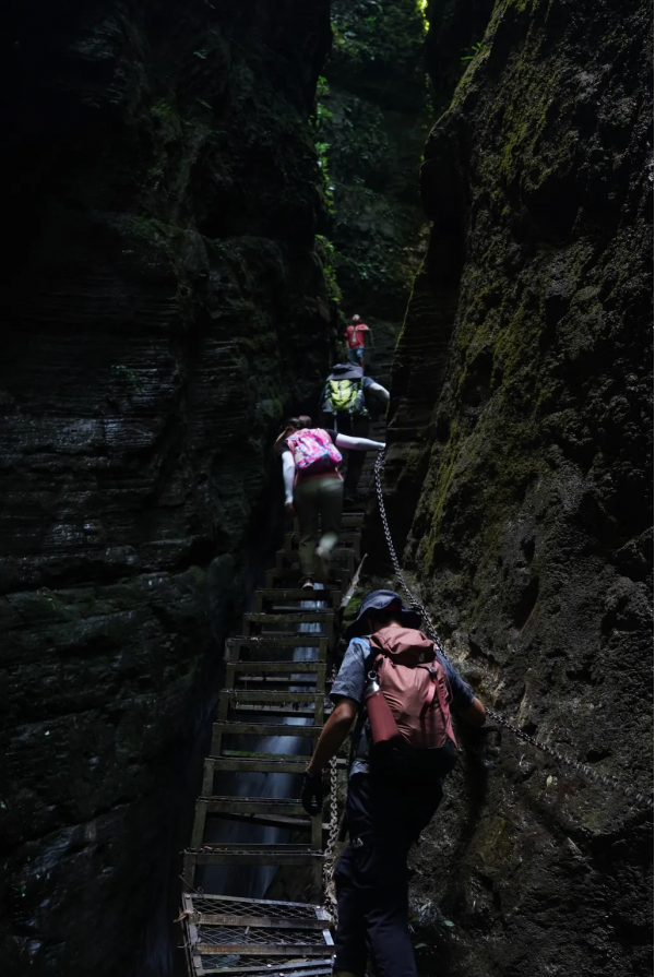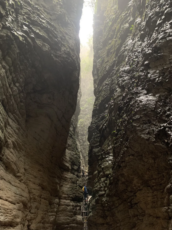 檳榔谷,這里是戶外徒步的天堂,全中國都找不出第二條的戶外路線。神秘的“天使之城”吸引了無數(shù)戶外愛好者結(jié)伴而來。檳榔谷是集溶洞、探險(xiǎn)、峽谷徒步、攀巖于一體,一次性360°全方位讓你體驗(yàn)戶外的樂趣,其中800米溶洞探險(xiǎn)最為刺激有趣。天使之城有一大型喀斯特溶洞,似天使留下的通城暗道。洞內(nèi)有暗河和數(shù)不清的支洞巷道,石灰質(zhì)溶液凝結(jié)而成的石鐘乳、石筍、石花、石幔、石珊瑚遍布其中,最大洞宮可容納千人,因歷代多有人洞中迷失,當(dāng)?shù)厝朔Q之為迷洞。迷洞暗河河道曲徑通幽,沿著它在黑暗中兜兜轉(zhuǎn)轉(zhuǎn)約800米后,眼前豁然開朗。過了天使之城,沿著崖壁陡坡巖降下切,來到一條狹長地帶的山岳型溪谷,就到了世外桃源 “ 夾兒溝 ” 。我們沿著夾兒溝溯溪而上,或一線天峽、或峰回路轉(zhuǎn)、或暗河涌動(dòng),一路醉眼朦朧。萬物皆有裂縫,陽光、空氣和生命之水,使得地縫秘境之處的夾兒溝,演化為生機(jī)盎然的,世外桃源!