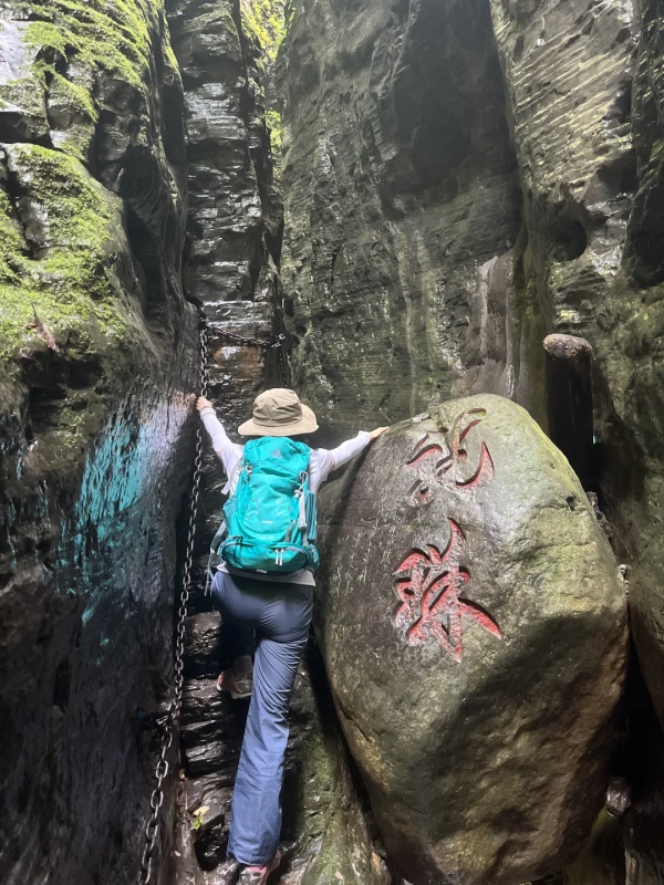 下午我們前往首車鎮(zhèn)豬鼻山徒步,這是一個(gè)完全未被開發(fā)的地方,只有當(dāng)?shù)厝瞬胖?,我們?cè)谛÷芬宦废滦?,一?jí)一步循著古人的腳步,踏出的是輪回和歲月。接著便來到今天的徒步精華--天生雙橋,行走于巨石上,腳踩億年前的巨石褶皺,感受自然的鬼斧神工。
