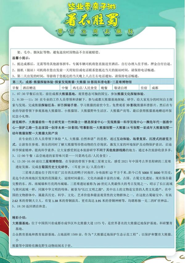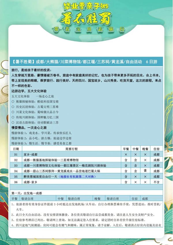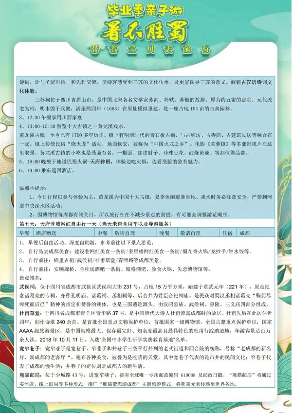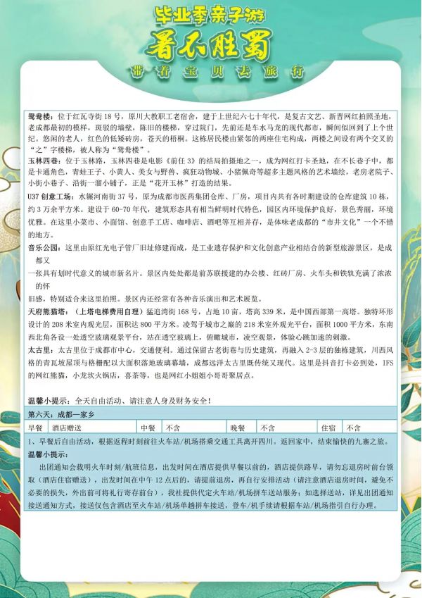 成都雙飛6日游