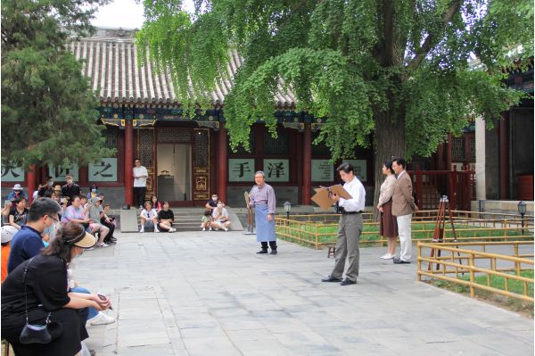 劇中,1937年七七事變前夕,為盡可能保留華北古建筑資料,梁思成、林徽因等對重要古建進行搶救性測繪,在恭王府巧遇古建老匠人,自此展開了一段長達20余年的知己相交之緣。在室外的第一幕表演結束后,主演們會引導觀眾從嘉樂堂院落走進主殿;而在觀眾駐足展廳中的老式監(jiān)視器前,看完黑白默片版的話劇第二幕之后,演員們又會走進展廳,開始第三幕的表演。