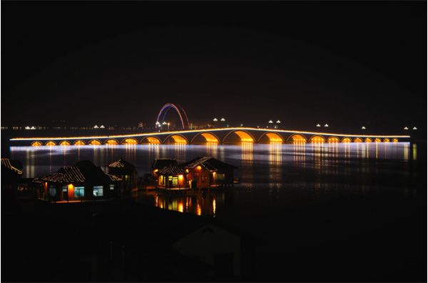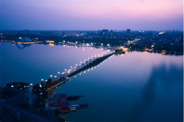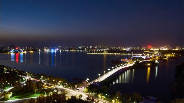 天光云影,碧波萬(wàn)頃,不外如是。橋上是車水馬龍,車下便是萬(wàn)家燈火。