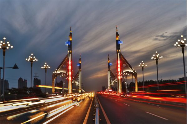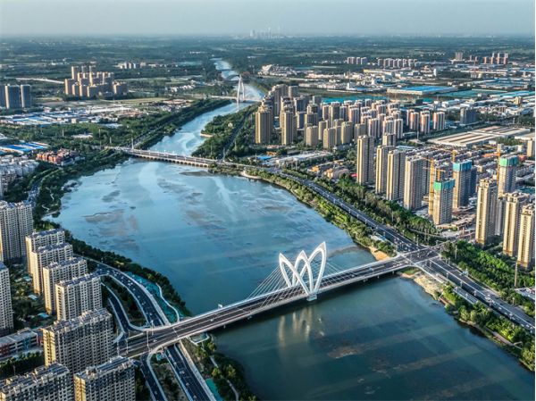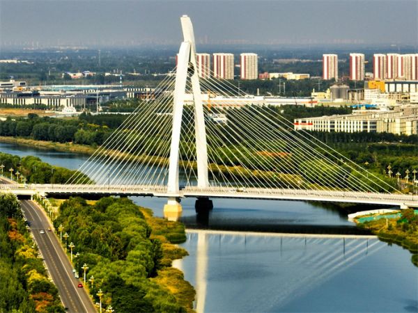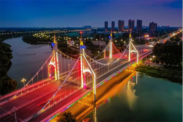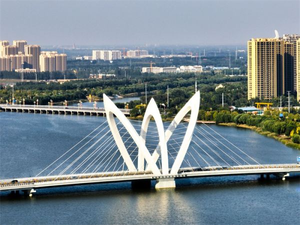 中華路大橋用獨(dú)特的造型,給徒駭河增添了無(wú)數(shù)風(fēng)采。