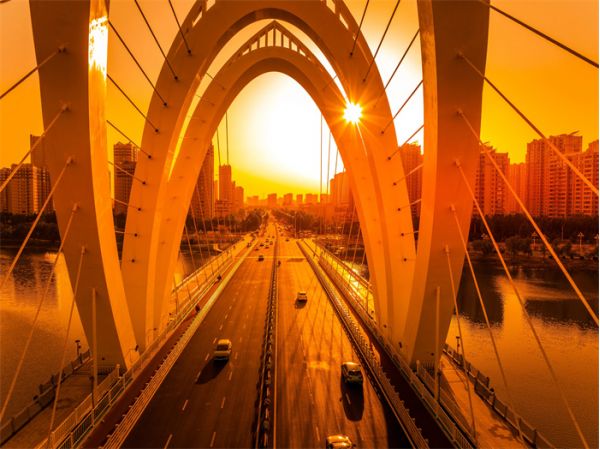 興華路徒駭河大橋全長(zhǎng)近384米,大橋采用雙向6車道設(shè)計(jì),很是雄偉壯觀。