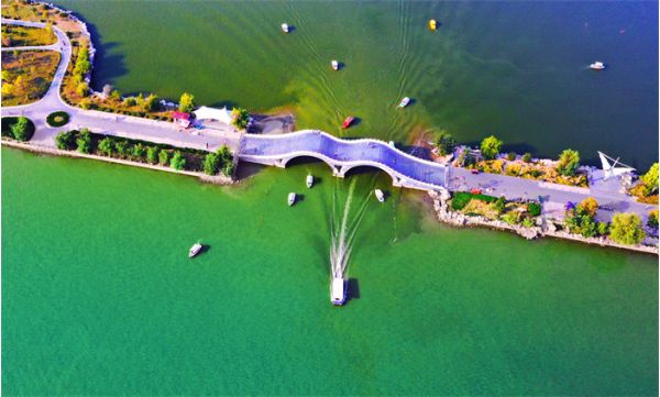 聊城人很愛(ài)東昌湖,于是找到了各種方法來(lái)欣賞東昌美景,走一走二十一孔橋,也是必打卡的一種方式了。