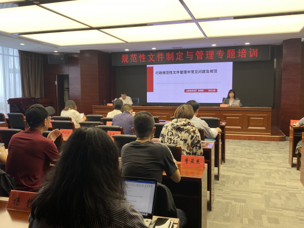張明厚處長(zhǎng)培訓(xùn)圍繞規(guī)范性文件制定和審查各環(huán)節(jié)中常見問題進(jìn)行了深入講解,結(jié)合具體案例進(jìn)行分析,加深了大家對(duì)規(guī)范性文件的認(rèn)識(shí),對(duì)工作中容易出現(xiàn)的問題做了進(jìn)一步強(qiáng)調(diào)。