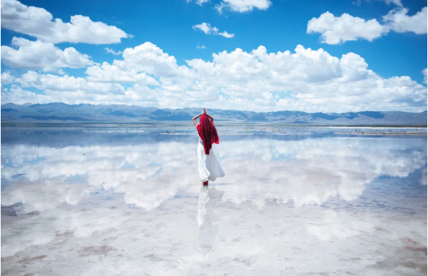 今早我們從大柴旦出發(fā),來到美麗的【翡翠湖】 ,在藍天白云的映襯下,猶如一塊塊美玉散落在人間,非常的迷人。隨后前往中國版的“天空之鏡”【茶卡鹽湖】 。茶卡的天空異常干凈,在白色之上。與其說是天空之鏡,不如說是一場幻境,天地一線,在現(xiàn)實世界中早已很難找到如此純凈的地方,白得是如此的徹底,抬起頭,頭頂有著一片藍天,低下頭,腳下仍是一片藍天,已分不清是天空倒影在湖水中,還是湖水融化在藍天里。大家可以在鹽湖里奔跑嬉戲,盡情的凹造型拍照,還有夕陽的倒影。(夕陽下拍倒影最佳。)晚上我們將前往茶卡鎮(zhèn)入住酒店。