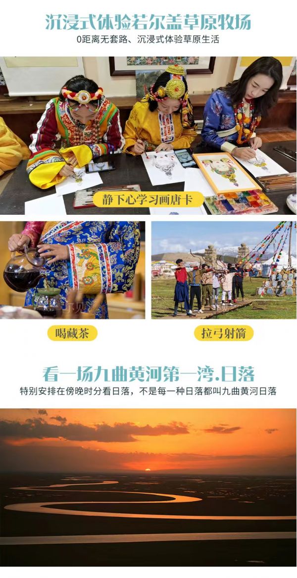 (4)贈送沉浸式草原生活體驗(畫唐卡、喝藏茶、拉弓射箭)。