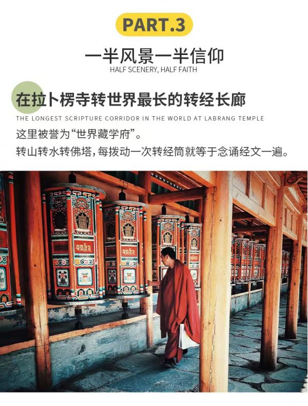 繼續(xù)往前【拉卜楞寺】,有“世界佛學(xué)院”之稱的【拉卜楞寺】。拉卜楞寺是藏傳佛教格魯派六大宗主寺之一 , 規(guī)模僅次于布達(dá)拉宮,是藏傳佛教格魯派最高佛學(xué)學(xué)府之一,被世界譽為“世界藏學(xué)府”,相當(dāng)于我們眼中的“清華北大”。在漫長的發(fā)展中拉卜楞寺形成了獨特的藏傳佛教文化,包括建筑、學(xué)院、法會、佛教藝術(shù)、藏經(jīng)等,曾經(jīng)是甘、青、川毗鄰地區(qū)藏族的政治、宗教、文化中心。在學(xué)院堪布的帶領(lǐng)下來,進(jìn)入寺院,欣賞美麗的壁畫、唐卡,精美佛像;走過朱紅玄黃長廊,和喇嘛一起撥動轉(zhuǎn)經(jīng)筒;在這紅白相間的宏偉寺院中,看虔誠的信徒磕著等身長頭來此轉(zhuǎn)經(jīng);與僧人一起聽經(jīng)、打坐,靜靜感受這份信仰的力量。而后經(jīng)過【瑪曲】,母親河黃河這里自西南入境,復(fù)從西北出境。