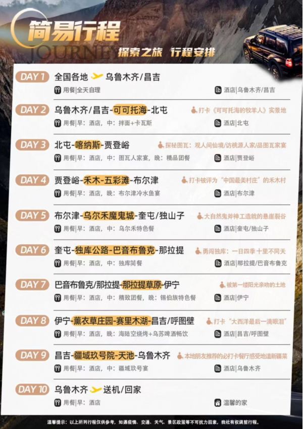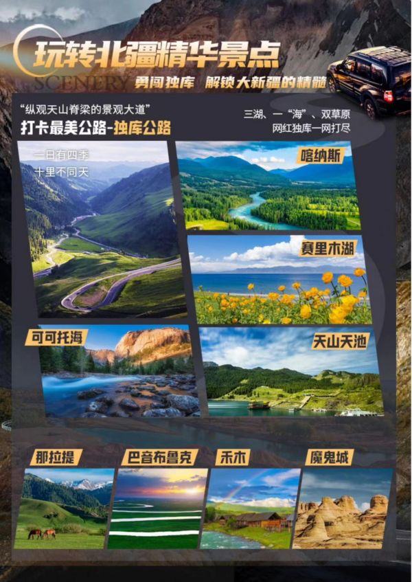 5.贈送:天池區(qū)間車、喀納斯區(qū)間車、禾木區(qū)間車、可可托海區(qū)間車、魔鬼城區(qū)間車、那拉提區(qū)間車、巴音布魯克區(qū)間車。