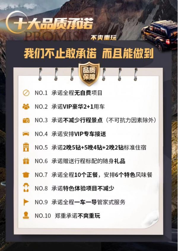 旅游產(chǎn)品關(guān)于車輛和保險告知: 1.旅游行程中車輛為空調(diào)旅游車,保證每人一個正座;