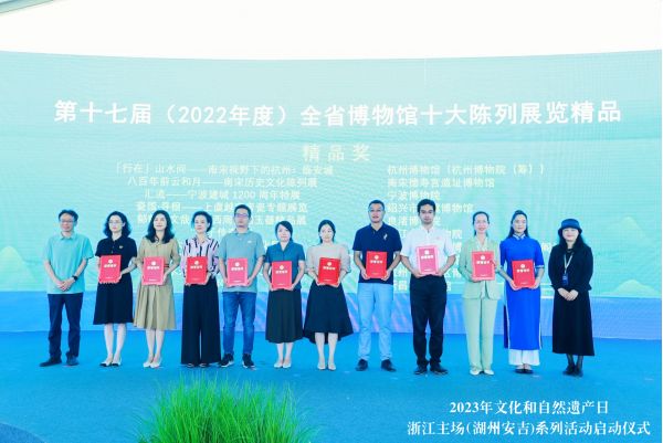 現(xiàn)場,第十七屆(2022年度)全省博物館十大陳列展覽精品獎頒獎儀式舉辦;2022年度浙江考古重要發(fā)現(xiàn)、2022年度全國十大考古新發(fā)現(xiàn)、第二十屆(2022年度)全國博物館十大陳列展覽精品獎、2022年度全國文化遺產(chǎn)十佳圖書、2022年度全國文化遺產(chǎn)優(yōu)秀圖書、全國文物事業(yè)高質(zhì)量發(fā)展優(yōu)秀案例、第五屆全國“